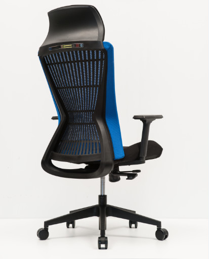 이 인체 공학적 사무실 의자에는 조절 가능한 머리 받침, 내장형 요추 지지대 및 폭포수 좌석 가장자리 디자인이 있습니다.